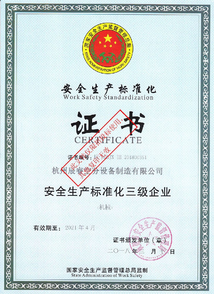 安全生產標準化證書